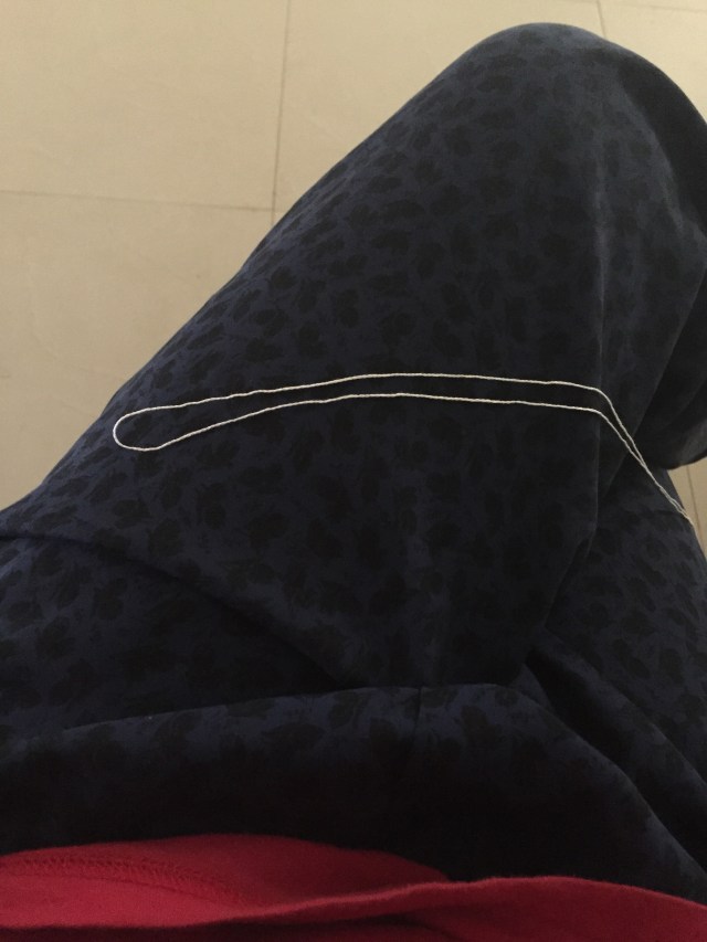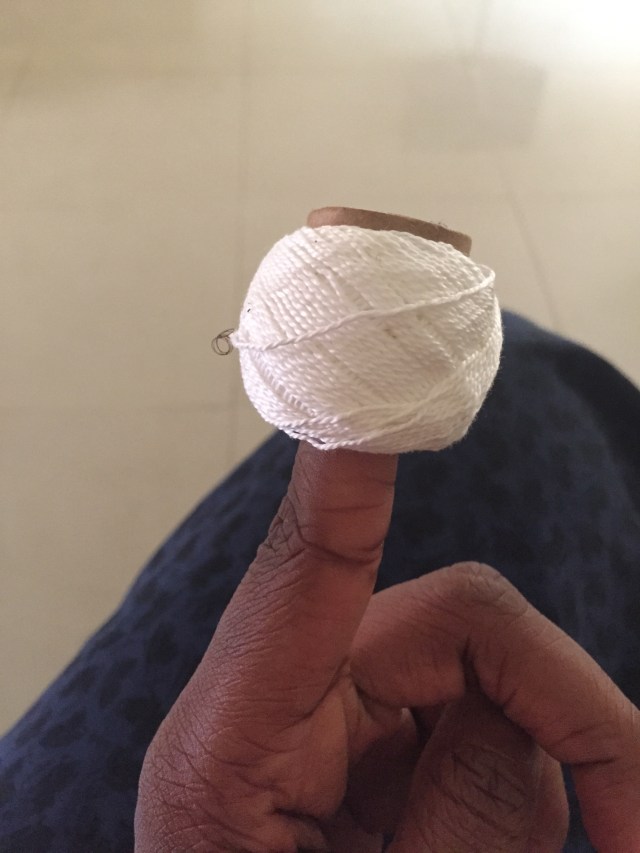 I used regular sewing thread because I’m yet to find the rubber one more commonly used for threading hair.