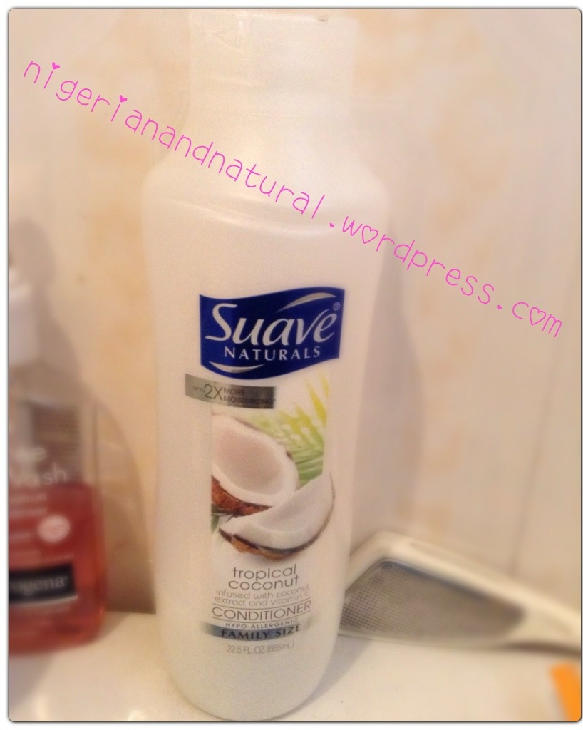 After this, I decided to try Suave Naturals Tropical Coconut(one of their silicone free conditioners). I got it off Sizelle,whose customer service is good by the way. One major deciding factor was that it was cheaper than Giovanni(N2450 then an additional N500 for delivery) and over 2x bigger than Giovanni.