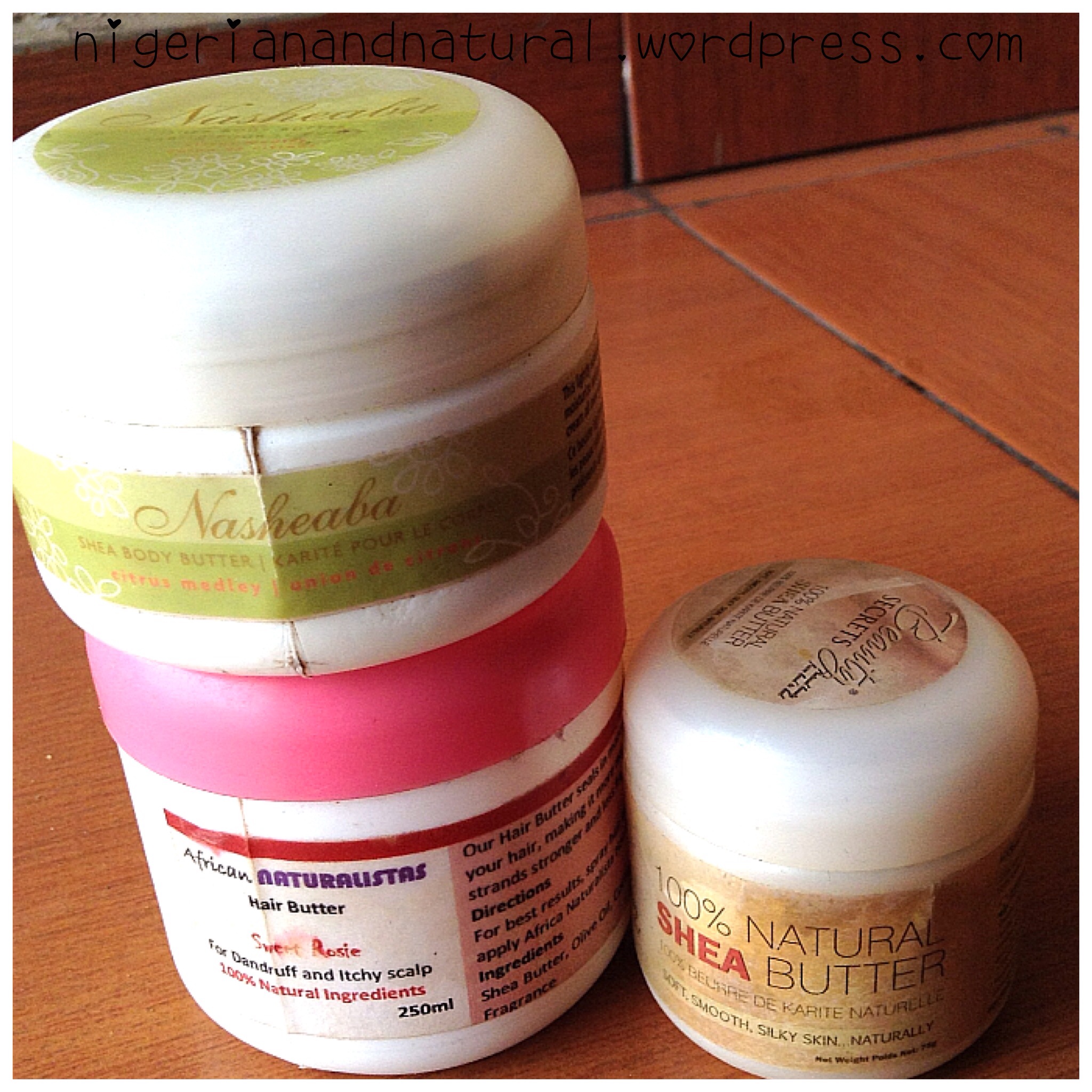 -Nasheaba Shea body butter (purchased at Shoprite Accra)